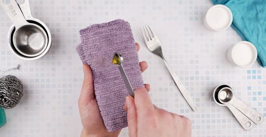 Polish your appliance. Stainless steel can be polished with common, household products like glass cleaner, olive oil, lemon oil, and baby oil. Slightly moisten a rag or a microfiber cloth with your chosen polishing product (a little product goes a long way), and thoroughly wipe the stainless steel surface. Follow the grain of the appliance while polishing. That way, you reduce the risk of making scratches in the stainless steel surface.