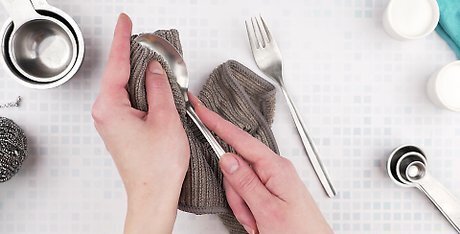 Buff off the excess polish. Use the dry side of the cloth to buff and wipe away any remaining polishing solution. In the end, you want your appliance surface to be dry to the touch. If your appliance still has streaks after you polish it, consider getting a stainless steel cleaner from a hardware store.