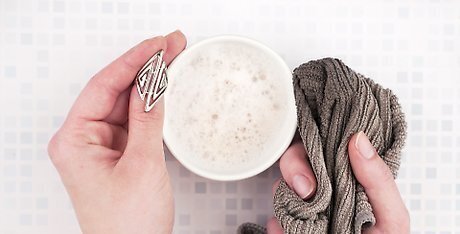 Fill a small bowl with water. Add some mild detergent, like dish soap, to the water. Dip a clean cloth into the water and soap mixture, and wring out the cloth. Then, wipe the piece of jewelry with the cloth until the jewelry is clean. Wipe and clean the jewelry going along the grain of the piece. This helps maintain the jewelry’s uniform finish.