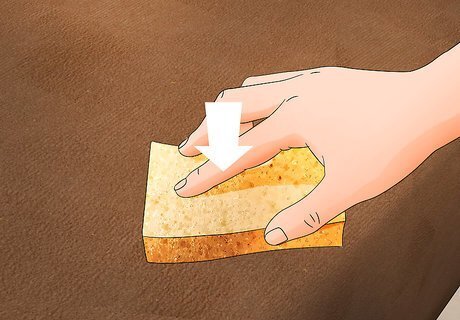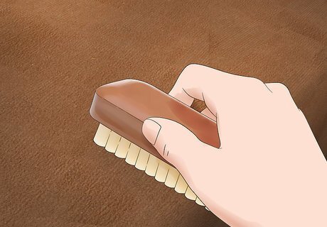 Use a suede brush. A suede brush is typically inexpensive and will be used often with suede furniture. If you don’t have a suede brush, you can also use a towel, toothbrush, or nail brush. Use the brush to work the nap up on the piece of furniture. Then, scrub harder to remove any spots that may be on the furniture.
