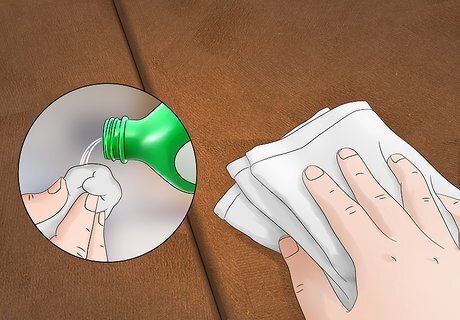 Clean up the stain immediately. Do not wait to begin cleaning when something is dropped on the furniture. Immediately use a towel for blotting if liquid has been dropped to avoid the liquid being soaked into the furniture. Once most of the liquid has been blotted up, you can use a cleaning solution to remove the stain.