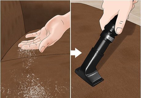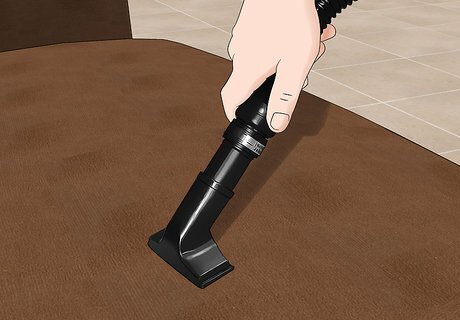 Vacuum regularly. Vacuum anytime you notice any crumbs or small particles begin to accumulate. Use the soft brush or upholstery attachment to vacuum. Vacuum in a cross pattern for best results. Vacuum before every cleaning.