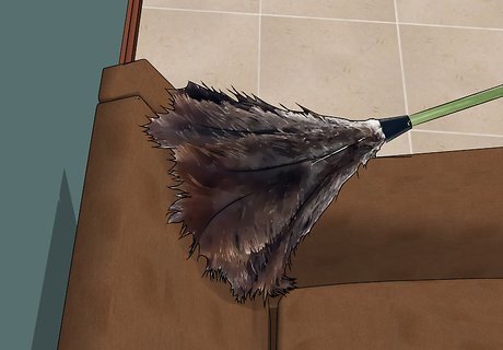 Dust off the suede. Dust your suede furniture every few days or every week. Use a duster or cloth. Go over the entirety of the suede portion of the furniture.