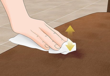 Sponge off excess moisture. If water has been dropped and dried, rewet the entire portion of the furniture where the water has been dropped. Then, use a sponge to absorb the excess moisture. The wet spot should blend in with the rest of the suede once it dries. Use a suede brush or towel if the water has just been dropped.