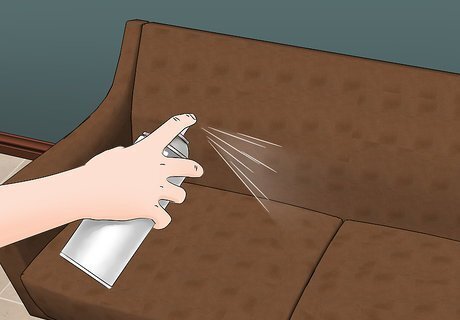 Spray on a stain repellent. Look for a water and stain repellent made especially for suede, which should be available at most supermarkets. Vacuum the suede first, and then spray stain repellant over all of the suede. The repellent will keep the suede from staining when food and liquid is dropped and keep the suede in good condition for longer.