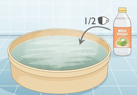 Create your own cleaner with vinegar and warm water. Add 1 cup (240 mL) of white vinegar to 1 gallon (3.8 L) of warm water. Stir the ingredients to mix them. Use this solution to clean stains, but only apply it to the stain itself. Vinegar can dull your laminate floors if you apply too much or leave it on too long. Wipe the area down with warm water after the stain is gone. Then, pat the area dry with a clean rag.
