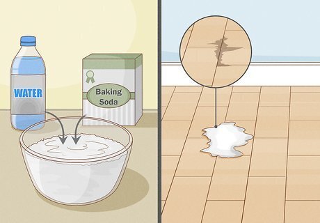Make your own cleaning paste with baking soda and water. Pour your baking soda into a bowl, then add enough water to create your paste. Apply the paste only to the stain. After the paste dries, re-wet it and wipe away the residue with a clean, wet cloth. Finally, dry the area with a fresh cloth. You can add vinegar to your paste to make it stronger.