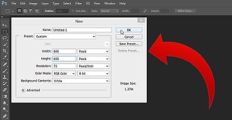 Open the Adobe Photoshop CS5.1 and choose the options to open board. Here's the Path to follow. File-->New. Give the values of the resolution exactly how much you require. You may want to chose the values 800x600 Height and Width.