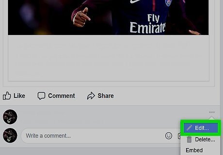 Edit your comment by hovering your cursor over it. Find the pencil that appears to the right of the highlighted column and click it. Click “Edit” and change your text to fix it. Your comment will list the date and time of the last edit you made. Friends can click on the “Edited” link under the comment to see what you changed.