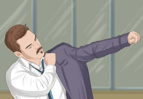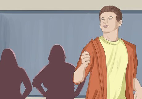 Use open body language. Open body language can be a great way to keep your audience engaged and display a sense of confidence during your speech. You should maintain eye contact with your audience and keep your arms relaxed at your sides. You should also stand straight, with your shoulders rolled back and your chin facing straight ahead. Avoid shifting around on your feet nervously or fiddling with your clothing as these can be signs of a lack of confidence. If you do need to move around as you speak, do so in a controlled and contained way. Pace around slowly and in a relaxed manner. Fast pacing can be distracting and take away from your presentation.