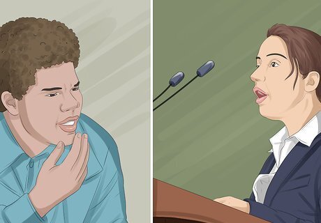 Do public speaking drills. If you are part of a forensics team, you may take turns practicing your presentations. As you take turns being the audience and then being the speaker, you can critique each other and offer feedback. These drills can help your team get more comfortable with public speaking and support each other as you all learn your strengths and weaknesses as speakers. You can also do these drills on your own, practice in front of a mirror or to an audience of family or friends. You should time yourself to ensure your speech is not too long or too short. All the forensics categories have strict time limits so make sure your presentation does not go under or over the time limit. Another option is to record your speech as you practice it. You may have someone on your team record you or record yourself on your own. You can then play back the tape and listen to your voice, noting any moments where you are speaking too fast or mispronouncing any words.