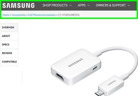 Buy an MicroUSB-to-HDMI adapter. An HDMI adapter is a block with an HDMI port on one end and a cable that plugs into your phone's charging port on the other. This allows you to plug your TV's HDMI cable into your phone, albeit indirectly. Samsung sells an official HDMI adapter for their devices, but you can find cheaper, non-branded versions online and in most electronics sections of department stores. Using the Samsung version of the HDMI adapter will generally ensure that if it doesn't work, you can get a new one for free.