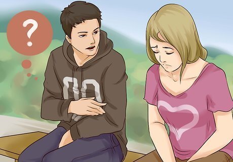 Make sure she knows that you're available to talk. Sometimes, your friend may really need to talk to you about their experience but they think that because it’s sad or weird or “gross”, she can’t. If you’re willing to talk to them about the problems that they’re going through, you should make sure they know that you’re open and ready to deal with whatever they have to say. Say something like “I know there’s nothing I can do to fix this but if you just want someone to talk to, I hope you know that I’m here whenever you need me.” Be careful, however, not to leave them feeling like they’re obligated to talk about their experience. A one time offer to talk or just simple hints that you’re there for them (such as arranging quiet and private opportunities to talk) is plenty.