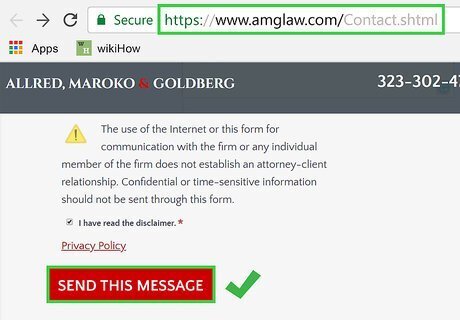 Visit Allred, Maroko & Goldberg's website for most legal inquiries. If you're seeking legal representation for an employment, harassment, or discrimination suit, you can reach out to Ms. Allred through the law firm where she is a partner. Enter your personal information in the contact form, along with a brief description of your problem. You can find the contact form by visiting https://www.amglaw.com/Contact.shtml. Although they can not personally respond to each inquiry, they do read all of them, and they will reach out to you if they decide to take your case.