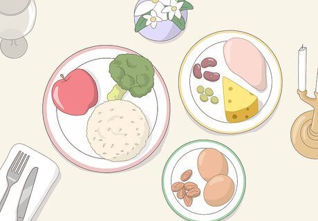 Eat a healthy, balanced diet. In addition to avoiding purine-rich foods, it's important for your overall health to maintain a nutritionally balanced diet. You can get the nutrients you need and avoid developing high levels of uric acid in your body by: Eating healthy sources of carbohydrates, such as fruits, vegetables, and whole grains. Choosing lean protein sources, such as beans and lentils, poultry breast, and low-fat dairy products. Opting for healthy fat sources, such as nuts, nut butters, and eggs.