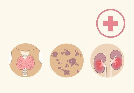 Work with your doctor to manage any underlying medical conditions. Some medical conditions are associated with a risk of high uric acid levels. Talk to your doctor about the best way to treat these conditions so that you can keep your uric acid levels and any other problematic symptoms under control. Common risk factors for elevated uric acid include: An underactive thyroid Diabetes Psoriasis Obesity Kidney disease Certain cancers