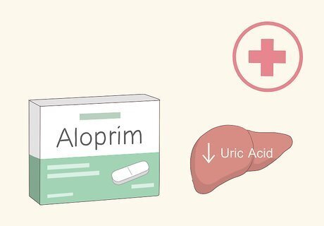 Ask about medications that reduce uric acid production. If you have gout or kidney stones, your doctor may recommend a medication that limits your body's ability to create uric acid. These medications are called xanthine oxidase inhibitors (XOIs). Talk to your doctor about whether an XOI might benefit you. Common XOI medications include allopurinol (Aloprim, Lopurin, or Zyloprim) and febuxostat (Uloric). Your doctor may prescribe one of these medications along with a medication to help flush uric acid out of your body. Talk to your doctor if you experience side effects such as a rash, nausea, or signs of liver disease (such as yellowing of your skin and eyes).