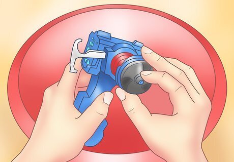 Spin the Beyblade. Attach the Beyblade to the controller. The Beyblade should easily click into place on the right side of the controller. Then put the ripcord into place and let it rip!