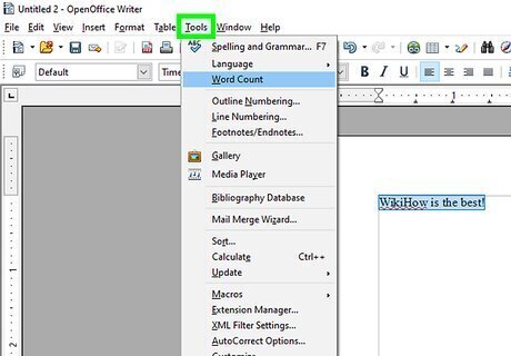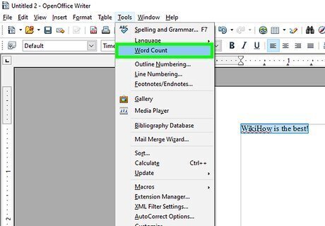 Open your document in OpenOffice. You can either open the document from OpenOffice by clicking the File menu and selecting Open, or by right-clicking the file on your computer and selecting Open With. You'll usually find OpenOffice in your Start menu or Applications folder. In versions earlier than OpenOffice 2.0 (around 2005), there is no feature to provide a word count.