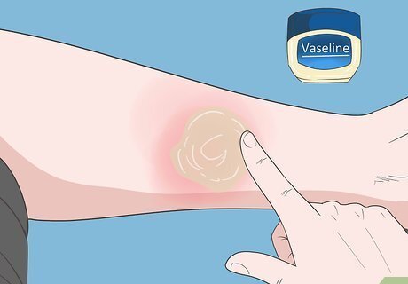 Cover the lubricated spot with gauze or a non-stick bandage. Take a sterile bandage or gauze that’s large enough to cover the affected portion of skin. To further protect the wound, wrap the bandage loosely around the petroleum jelly. Don’t use band-aids or adhesive bandages, as these will irritate your infected skin.