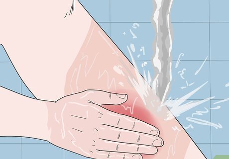 Place a cool, wet cloth on the area to soothe any discomfort. Soak a cloth with cool water, then wring it out and arrange it over the wound. Use these compresses as often as you need, or whenever the skin feels sore and irritated.