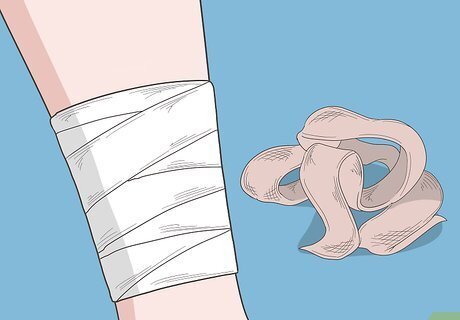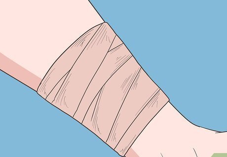 Rest the infected area on an elevated surface above your heart. Find a comfortable place to sit, like a bed or sofa. Prop the affected area up on a table or other high surface, which can make the injury hurt and swell less severely. Consider placing a folded towel or pillow beneath the affected area.