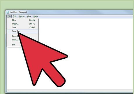Save it correctly. In order for the batch file to run properly, the computer has to know what kind of file it is. That is why it is important that you save it correctly. In the upper left-hand corner, click “File” then “Save As...” A small box will appear. In the pane on the left-hand side of the window, scroll up and select “Desktop,” or wherever you want to saved it. At the bottom of the window under the “Save as type:” field, click and select the “All Files” option. Above it, in the “File name:” field, type in the name of the file but add “.bat” to the end of it (Example.bat). Hit “Save” in the lower right hand corner of the window to save the file.