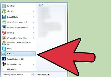 Open the Notepad. Press and hold the Windows key and hit “R” on your keyboard. There will be a little box that pops up in the lower left-hand side of your screen. Type “notepad” and hit Enter. This will open Notepad on the screen. One alternate way to do this is to click the Start menu and type in “notepad” in the search field and hit “Enter” there.