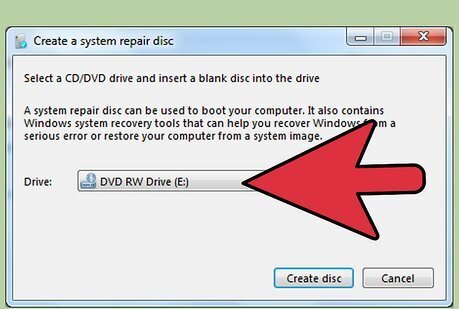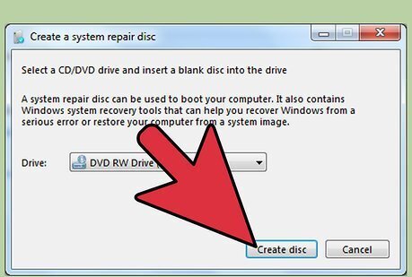 Click on “Create disc.” Windows will then begin to write the files needed to repair the system onto the disk you inserted.