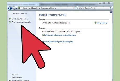 Click on “Create a system repair disc” in the left pane of the Backup and Restore window.