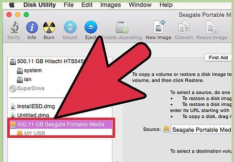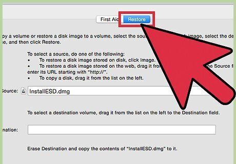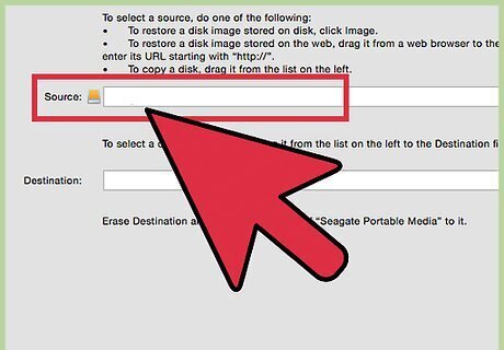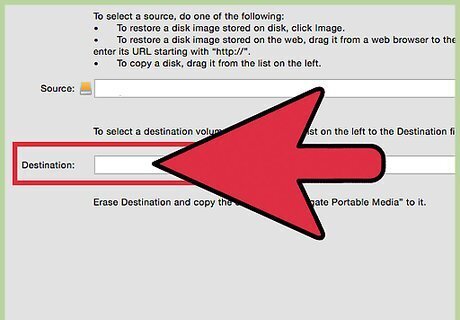 Click and drag the new partition from below the name of your flash drive in the left pane over to the “Destination” field. In most cases, the new partition will be labeled “Untitled.”