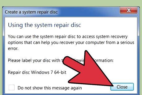 Click on “Close” after Windows informs you that the boot disk has been created. You will now have the ability to use the boot disk at any time you’re having difficulty booting up your Windows 7 or Windows Vista computer.