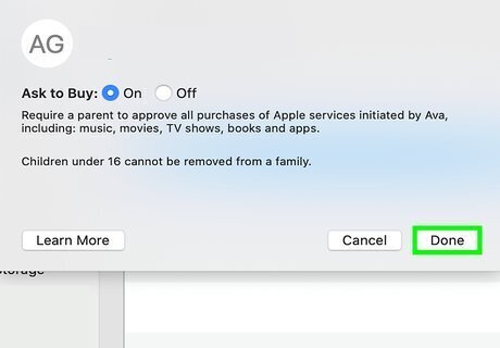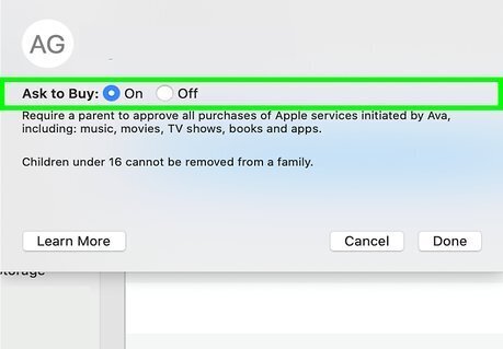 Make sure “Ask to Buy” is checked. This makes it so every purchase your child attempts to make from iTunes or the App Store will prompt you to give permission.