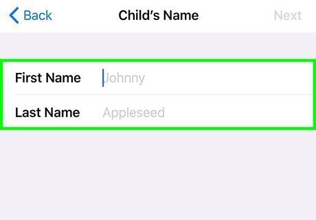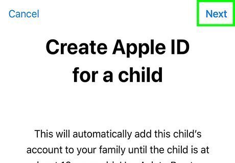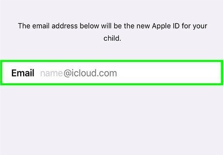 Enter an Apple ID for your child and tap Next. This is the name your child will use to sign in to Apple devices and services.