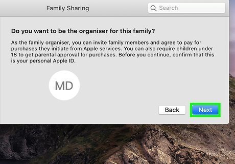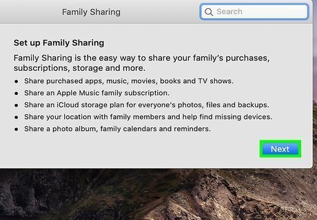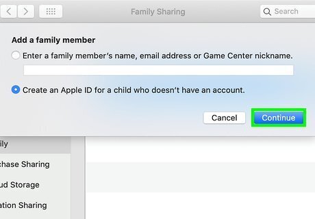 Click Set Up Family. It’s on the left sign of the screen, beneath your name and photo. When you set up Family Sharing, you become the family “organizer,” which means you can add a child account for which you’ll have full administrative control. If you’ve already set up Family Sharing, you’ll see Manage Family instead. Click this and then skip to step 11.