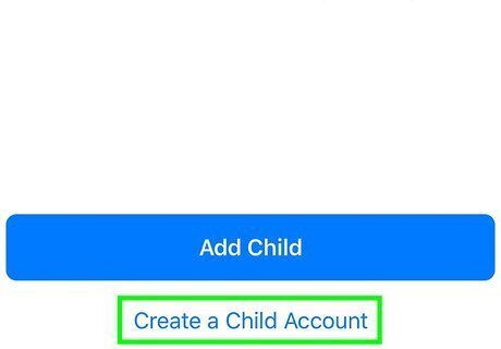 Tap the blue Create an Apple ID for a Child link. You may have to scroll down to locate it.