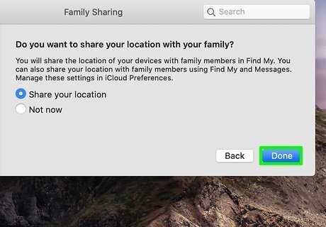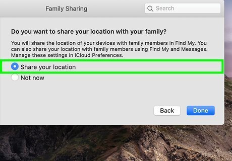 Choose whether or not to share your location with other members of your family. If you choose “Share your location,” other members of your family will be able to see you in “Find My Friends.”