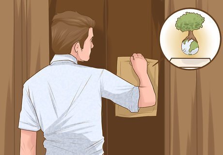 Come up with specific projects to do. You founded this club to help the environment, so now it’s time to look for ways to do that. You may have had a few ideas before starting the club, which is great. This is the chance for your whole club to talk about their goals and brainstorm project ideas. There are all sorts of projects you can do, so focus on ones that play to your strengths and fit within your larger goals. Some things you might consider include: Start a composting or recycling program for your school or business Create a community garden Have a local clean-up, maybe of a dirty lot or polluted waterway Adopt a highway Write up environmental tips and other information for your school, office, or other places Show an environmental film, or have a film series Start a letter-writing campaign to local officials for better environmental policies