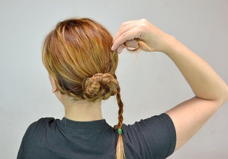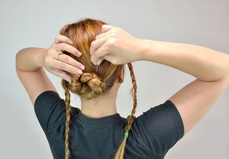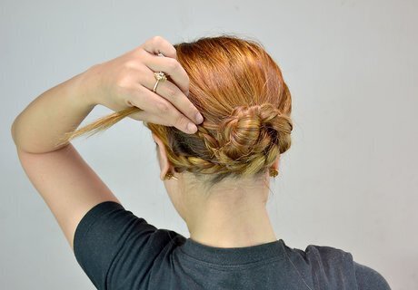Take the largest braid and roll it into a bun, tucking the end of the braid under the bun and securing it with bobby pins.