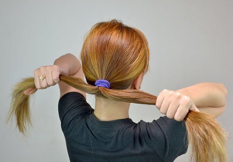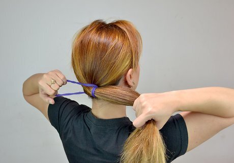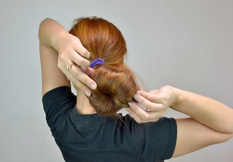 Put your hair in a ponytail where you want the bun to be. It can either rest on the back or the top of your head near the crown.