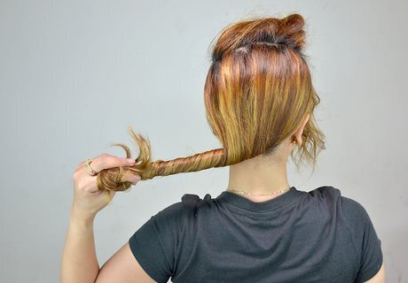 Begin to take small chunks of hair randomly from the pieces that have not yet been pinned and twirl them into loose ringlets around the first chunk that you pinned. Make sure to use small pieces of hair and take chunks from different sides of your head.