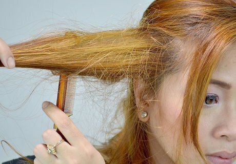 Tease each section of hair by taking a small comb and combing each of the three strands backward from about halfway to the end of your hair back to the roots. Place the three teased strands in front of your face.