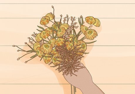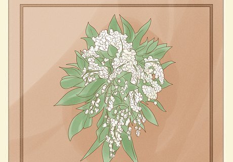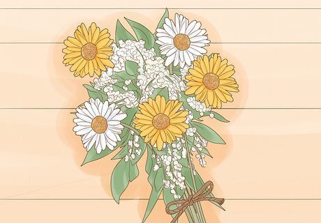 Design the bouquets with baby’s breath, daisies and fresh herbs. Roses and lilies are common choices for bridal bouquets, but consider using baby’s breath and daisies to create a more rustic vibe. Surround the simple blooms with fresh or dried herbal greenery. Lavender sprigs are a popular and fragrant choice and the tiny lilac flowers work well with bohemian color schemes. Eucalyptus makes a gorgeous, pastel green filler for bouquets. Tie the bouquets together with lace, velvet or satin ribbons in muted colors that match your wedding theme. Twine and burlap are also great natural-looking choices. Baby’s breath, daises and herbs are very cost-effective, especially in comparison to traditional options like roses.