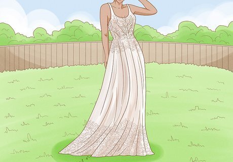 Look for a dress in a loose and flowing style. A boho bride should look relaxed and feel comfortable in her wedding dress. Opt for ethereal fabrics like lace, chiffon, organza, silk, satin and gauze. Seek out delicate textures and layers, which help to create an airy look. Billowy ruffles, lace designs, soft silhouettes, delicate spaghetti straps and vintage-inspired details can help create a whimsical and laid-back boho vibe. Subtle cream and time-worn ivory are great color alternatives to the traditional white wedding gown. Fabrics in pastels like lilac, pink and mint are also popular.