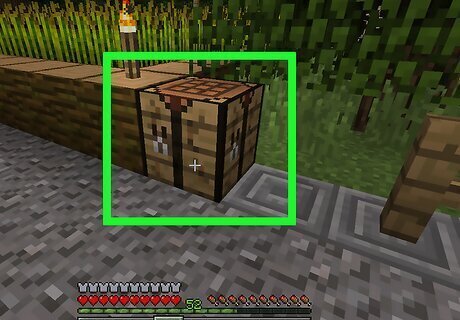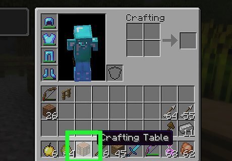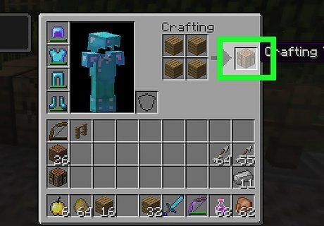 Craft your crafting table. Take your wood planks to your crafting area. Click on your wood planks, and drag them from the result box and into the 2x2 grid. Left-click on each of the boxes to put down one wood plank in each of the boxes. Your crafting table should appear in the result box.