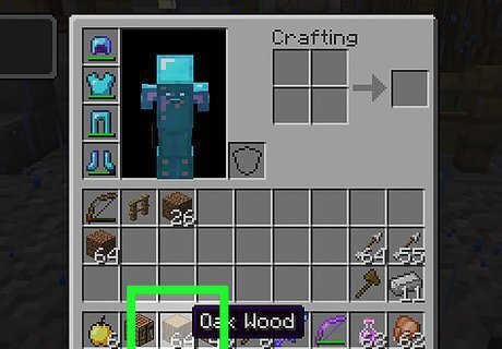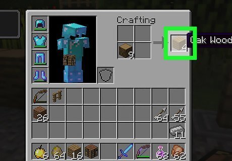 Craft some oak planks. To craft your crafting table, your first need to craft some wood planks. Go down to your inventory, and select the wood blocks you want by clicking the left side of your mouse. Drag the wood to your crafting area. Put down the wood in one of the 2x2 grid boxes by clicking the left side of your mouse. Your wood planks should appear in the result box on the right side of your grid.
