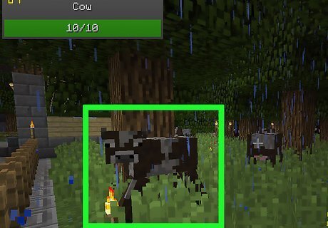 Kill the cow. To kill a cow, get close to one. Point your cursor at the cow. To hit and kill it, click and hold the left side of your mouse. Be aware that when the cow gets hit, it’ll try to run away. You may have to catch it and keep hitting it some more. Eventually, from all of the hits, it’ll die and either drop beef, or leather. If it drops beef instead instead of leather, that’s okay. Find another cow and hope for it to drop some leather.