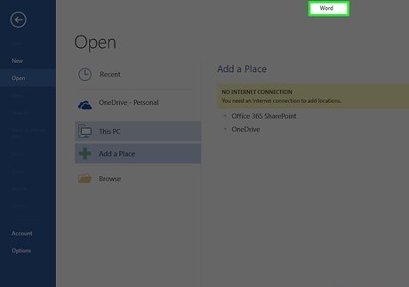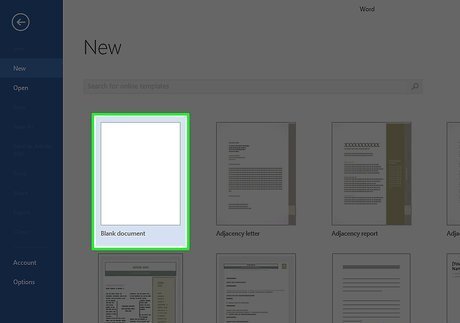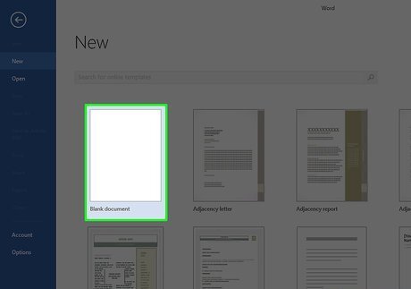 Open a document. Click the Blank option in the upper-left side of the window to create a new, blank document, or select a document from your computer. You can also double-click a document to open it in its respective program (e.g., double-clicking a Word document will open it in Word).
