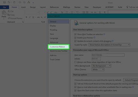 Click Customize Ribbon. It's on the left side of the Options window. On a Mac, click Ribbon & Toolbar in the Preferences window.