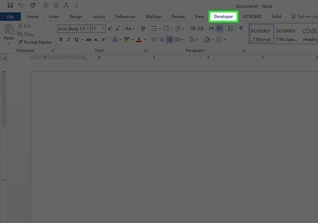 Click Developer. This tab is at the top of the program's window.